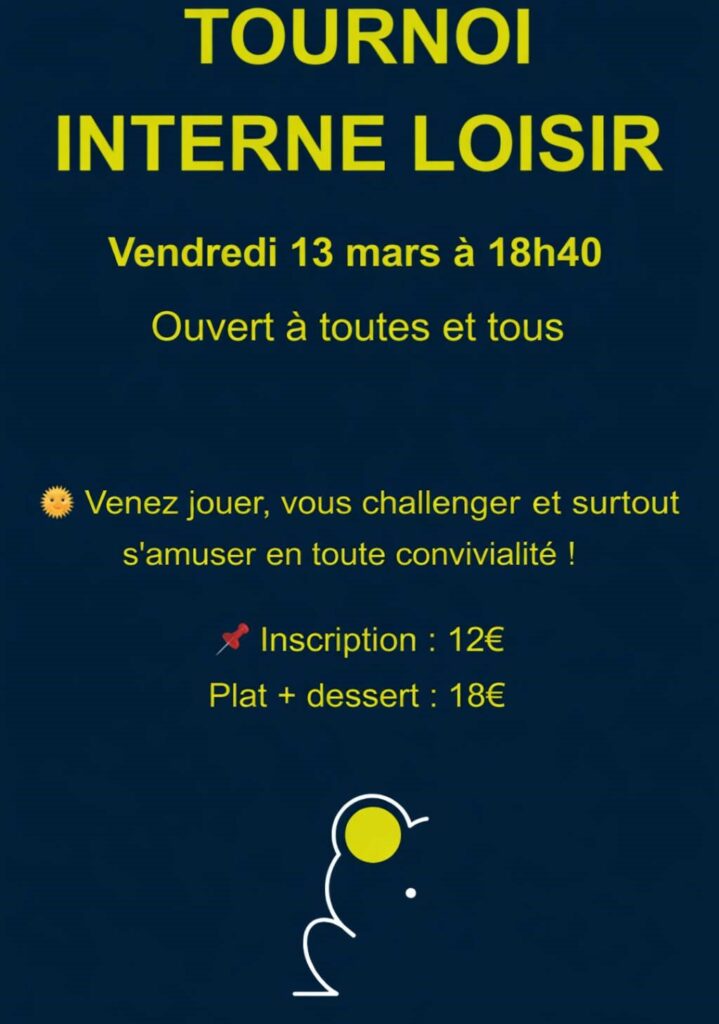 26 janvier 2026 > Lire la suiteC'est l'occasion de mesurer ton niveau face à d'autres joueurs passionnés en toute convivialité…